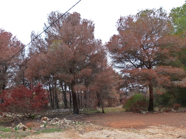 Einzig die Bergpalmen zeigen neues Leben und auch die Terpentin-Pistazien treiben neu aus