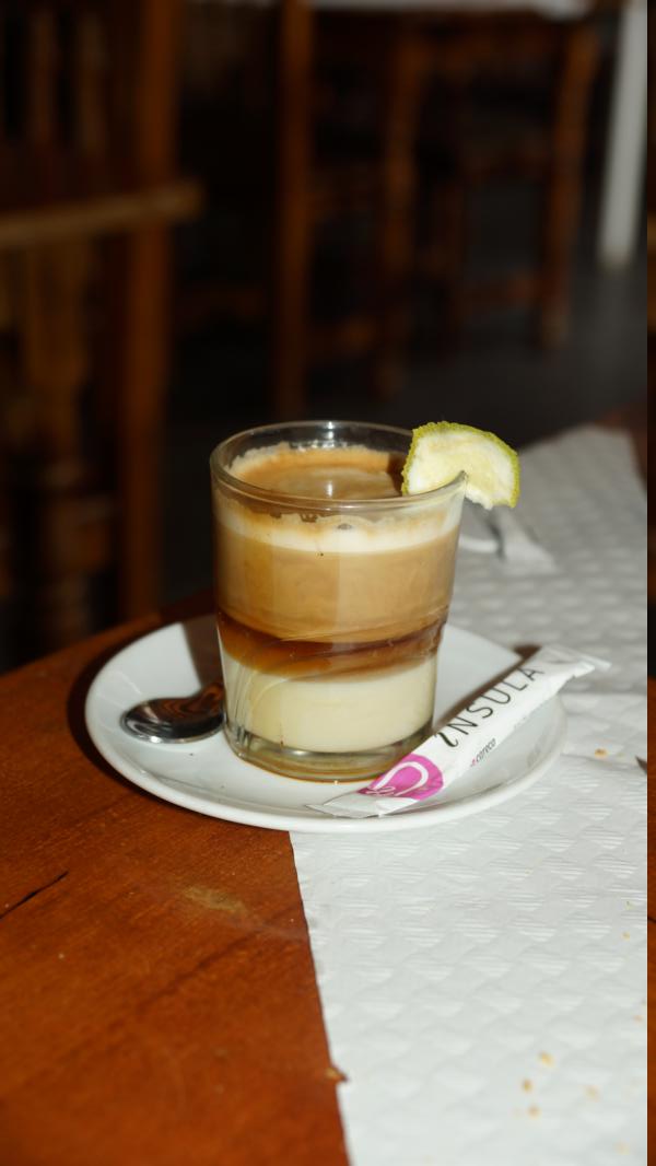 Und zum Schluss einen Paraquito, nur hier erhältlich. Dies ist ein Cafe solo mit Kondensmilch und Traubenlikör, sehr süss.