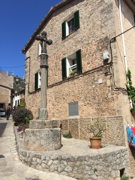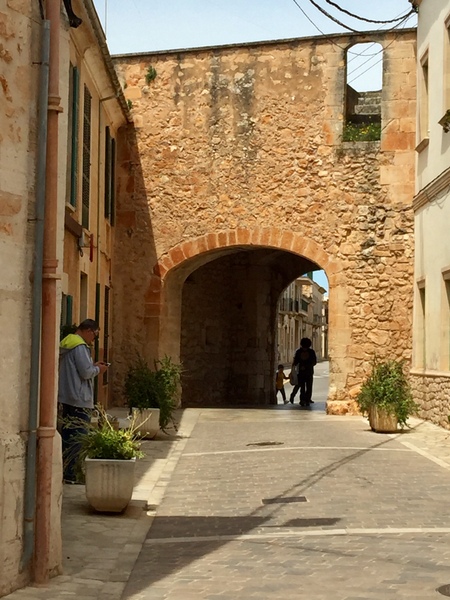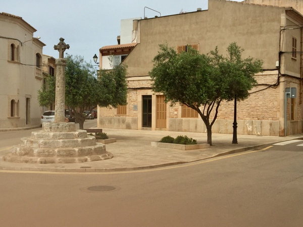 Die Stadt Santanyí ist eine selbständige Gemeinde, befindet sich im äußersten Südosten Mallorcas und wurde 1236 erstmals erwähnt. Geparkt haben wir am Ortsrand und sind von dort an einem Kreuz aus "pedres de Santanyí", den für die Gegend des Migjorns typischen feinkörnigen, kompakten Kalksteinen und dem alten Waschhaus in die Altstadt spaziert.