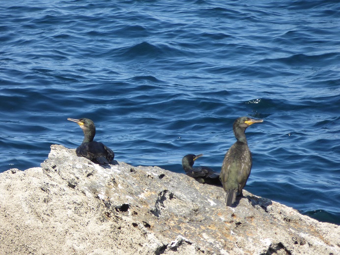Wir waren zeitig vor Ort und konnten uns noch in Ruhe im Hafen von Bueu umsehen. Frauen flickten in einer Halle die Fischernetze (der intensive Geruch vertrieb mich schnell), während die Männer die Stränge für die Muschelzucht vorbereiteten. Mit dem Boot fahren wir an den typischen Muschelbänken, Viveros oder Bateas genannt, vorbei. Nach rund 30 Minuten kommt die Insel in Sicht. Sie ist 4 Quadratkilometer groß und sehr grün. Viele Möwen erwarten uns - es ist ein besonderes Schutzgebiet für Vogelarten wie Cormorane, Reiher und Möwen. Das Wasser ist glasklar, sogar Seesterne kann man erkennen. Die Siedlung O Curro wirkt gepflegt, es gibt ein paar Bars und Restaurants, eine Kirche und ein Info-Center.