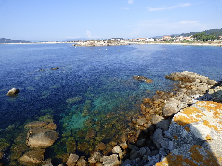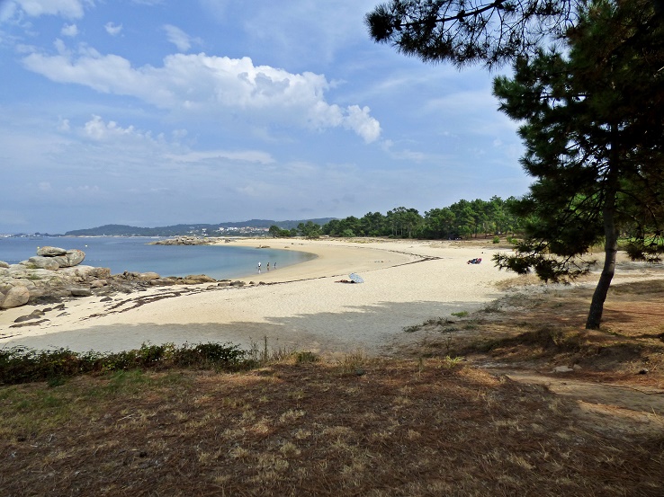 Wir kommen nach Sanxenxo, dem "Marbella Galiciens". Viele Hotels und Appartement-Anlagen, Jachthafen mit Segelschule, Restaurants, Diskotheken und viel Rummel. Wir halten nicht an, fahren weiter an dem 7km langen Sandstrand A Lanzada vorbei,