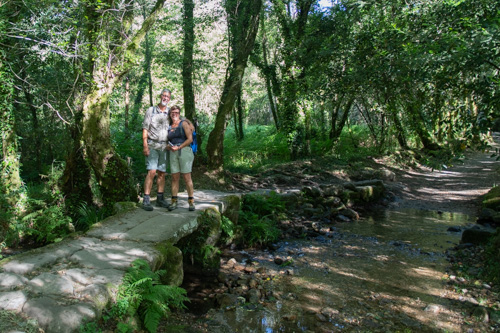 Jetzt sind wir in Padrón, einem Dorf mit ungeheurer Bedeutung - nicht für die Pilger, naja, vielleicht für die auch, sondern für die Gourmets unter uns: die berühmten „Pimientos de Patrón“ kommen von hier, 1,3 Millionen Kilogramm pro Jahr. Das sind die kleinen grünen Paprikaschoten, die vor allem in Spanien gegrillt oder auf der Plancha gebraten und mit Meersalz bestreut serviert werden. Völlig klar, dass die Unmengen, die verbraucht werden, unmöglich alle von hier stammen, deshalb gaaanz wichtig, die Originalen vor Ort zu genießen. Was wir heute zu Mittag auch ausgiebig getan haben, dazu reichlich vom galizischen Oktopus und dem herrlichen leichten frischen Weißen aus der Steintasse.