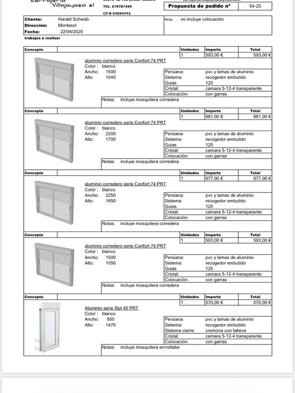 wir sind eurem Rat gefolgt und habe zwei weitere Kostenvoranschläge machen lassen. Einer steht noch aus, diesen haben wir bekommen. Er soll dem teureren von den beiden zuletzt geposteten Voranschlägen mehr oder weniger entsprechen. Was sagt ihr dazu? Sind diese einigermaßen vergleichbar? Der Preis unterscheidet sich ja schon ziemlich (sicher vermute ich, dass auch hier die IVA noch dazukommt).