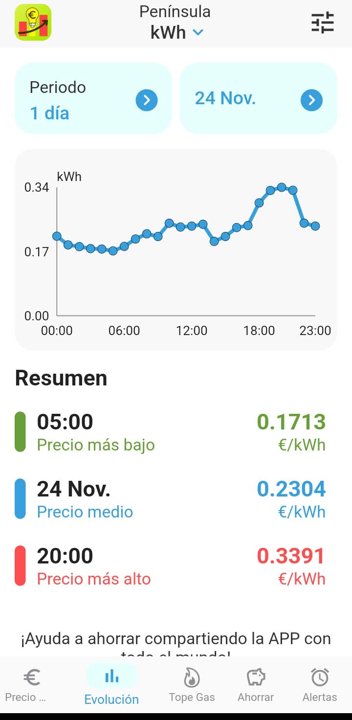 Ich bin im GooglePlay auf eine App gestoßen, die sich "Precio Luz España" nennt und angeblich den