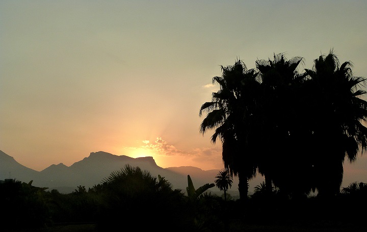 Während die Sonne hinter den Bergen verschwindet