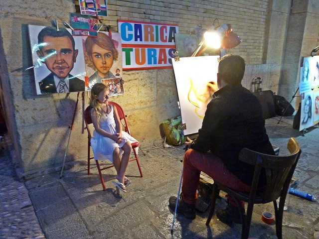 hoch zum Kirchplatz, wo Zeichner ihre Staffelei aufgebaut haben