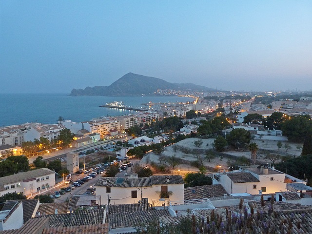 ein Blick auf Hafen und die Silhouette von Benidorm