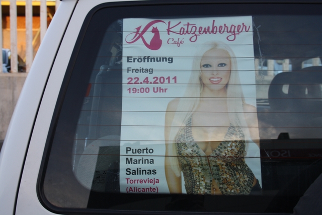 Am Karfreitag um 19 Uhr wurde das Cafe Katzenberger in Torrevieja eröffnet. Was sich zuerst wie ein 1. April Scherz anhörte, war doch keiner. Hunderte Schaulustige waren im Puerto Marina Salinas (neuer Jachthafen) anwesend. Eigentlich fehlte nur noch der rote Teppich für den Empfang von Daniela Katzenberger. Dieser hatte Ähnlichkeiten mit solchen von Topstars. Zwei Mercedes fuhren um 20 Uhr 40 vor und gaben dem Warten ein Ende. In Torrevieja war auf den Strassen reger Verkehr. Eine Stunde musste man für die Durchfahrt bis zum Yachthafen Geduld haben.