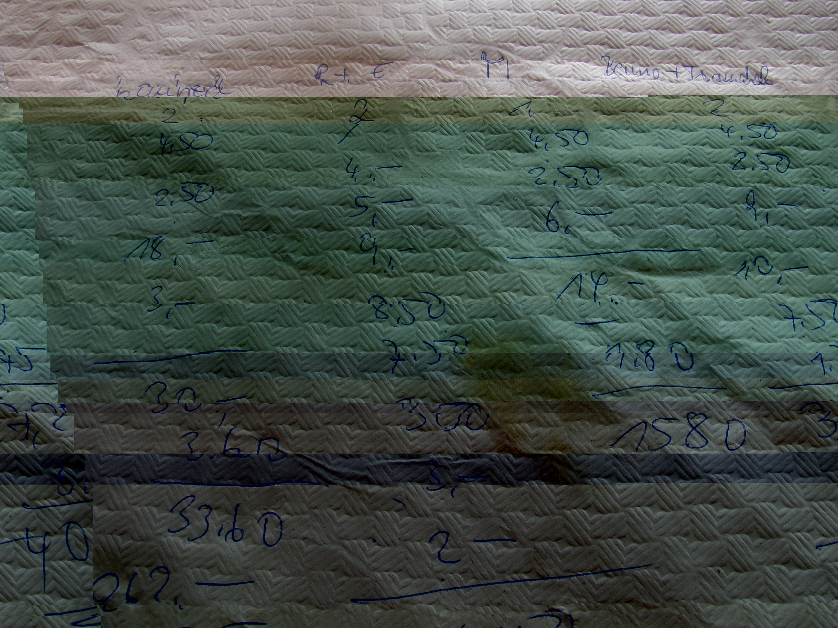 Ja, und wenn man dann mit einer größeren Gruppe unterwegs ist, wird auch schon mal das (Papier-)Tischtuch zum "getrennt abrechnen" missbraucht.Oliva B. hat geschrieben:Trinkgeld (3)