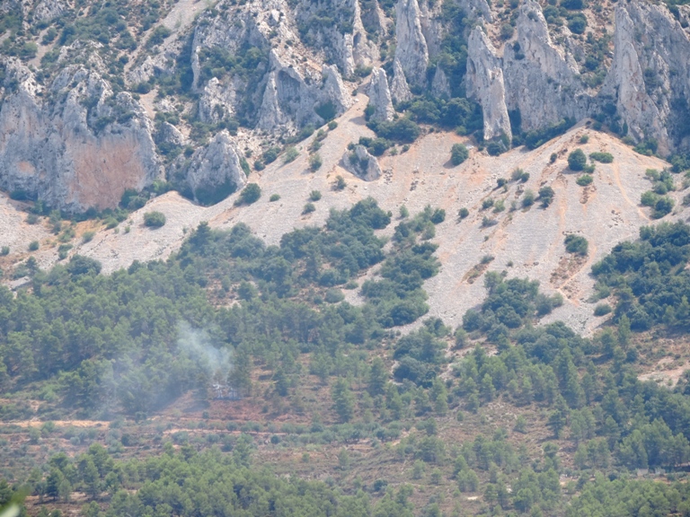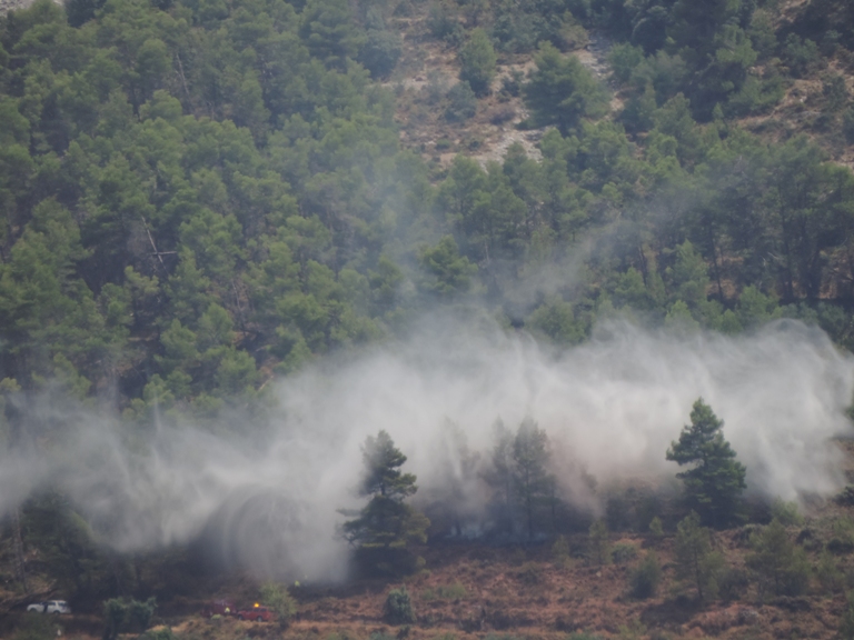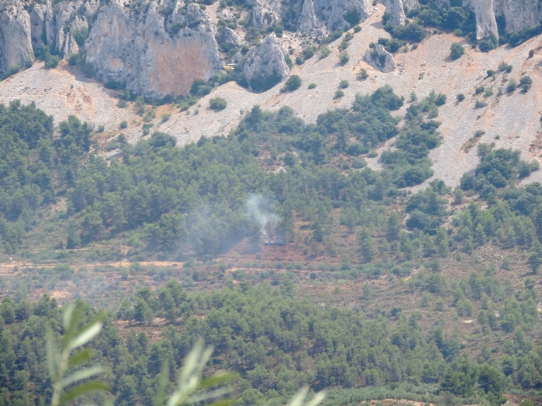 Es gewittert schon seit Tagen immer wieder in unserer Gegend und am Donnerstag bekamen wir um 15 Uhr zufällig mit, wie einer der vielen Blitze in einen Baum in der Sierra einschlug. Nun sind unsere umliegenden Gebirge weder abgeholzt noch leer gebrannt wie man es hinter dem schmalen Küstenstreifen an der Costa Blanca oftmals beobachten kann, im Gegenteil, sie sind dicht bewachsen. Wir bekamen einen Heidenschreck, als wir Flammen und kurz darauf eine dicke Rauchwolken aufsteigen sahen, inmitten einer Waldfläche im Schatten der steil aufsteigenden Gebirgswand. Nicht auszudenken, wenn daraus ein Brand wie im Vall de Gallinera entstünde.