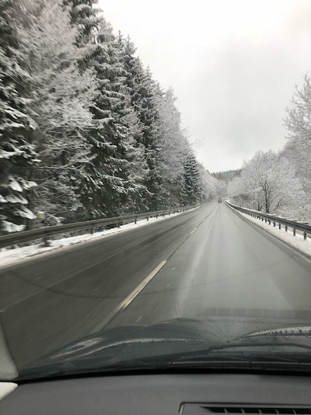 Etwas Sorgen haben uns aber die vielen Schneemeldungen, die für das Wochenende vorausgesagt wurden, bereitet. In Deutschland wohnen wir im Wald, auf einem Hügel und da ist es höchstens witzig mit Schuhen oder auf einer Plastiktüte den Berg runterzuschlittert, auf keinen Fall aber mit einem Auto plus 2 Tonnen Anhänger. Also haben wir kurzentschlossen umdisponiert und sind schon am Freitag losgefahren. Dazu wollten wir auch keinen Stress mit Ankunftszeiten bekommen und haben eine zusätzliche Übernachtung in Frankreich gebucht.