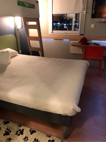 Die Fahrt ging gut voran, das Wetter hat gepasst und die einzigen Gelbwesten, die wir an diesem Samstag gesehen haben, standen an einer Pommesbude oder mit Motorrädern an einer Tankstelle. So kamen wir gut gelaunt und frühzeitig in unserer ersten Unterkunft in Frankreich, Dole an. Das gebuchte ibis budget Hotel erwies sich für uns als perfekte Unterkunft. Es gab große (kostenfreie) Parkplätze, an denen wir unser Gespann sicher abstellen konnten. Wir wurden freundlich begrüßt und das Zimmer hat für uns gepasst. Unsere Hunde waren willkommen und wir konnten eine ausgedehnte ruhige Gassirunde drehen. Gleich in der Nähe gab es einen großen Supermarkt, eine Tankstelle und einige Restaurants. Gegessen haben wir in der Pataterie. Für die gebotene Qualität fanden wir es dort zwar etwas zu teuer, aber auch hier wurden wir mit unseren Hunden gerne eingelassen. Sie bekamen sogar Wasser und Streicheleinheiten