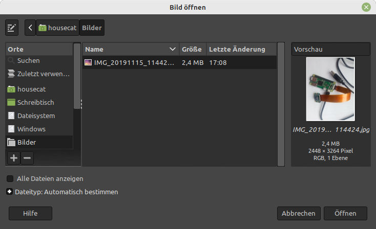 Für ein kurzes Verkleinern einer Fotodatei halte ich Gimp allerdings ein ganz klein wenig überdimensioniert