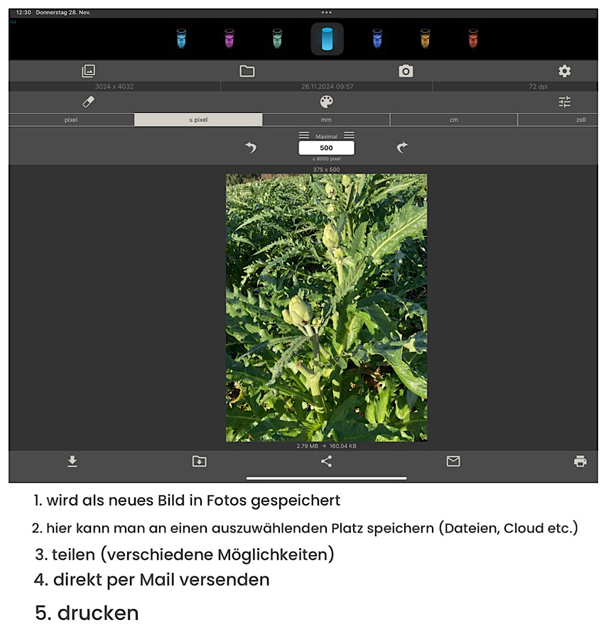 Mit IPad/IPhone wird die neue Bilddatei als neues Foto abgespeichert. Du kannst es aber auch an anderer Stelle sichern.Spanienwirkommen hat geschrieben: ↑Mi 27. Nov 2024, 21:58Danke für den Tipp! Die Verkleinerung hat (endlich) funktioniert. Ich hab zwar nicht rausbekommen wohin die App das verkleinerte Foto speichert, aber ich konnte es per Mail an mich verschicken, dann in eine Datei abspeichern. Und von da hochladen. Zwar umständlich… aber es ging.