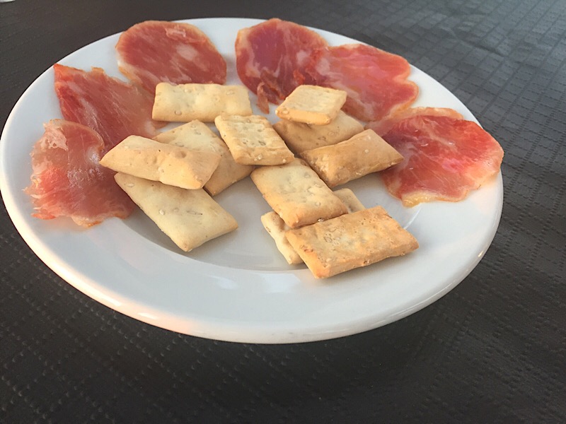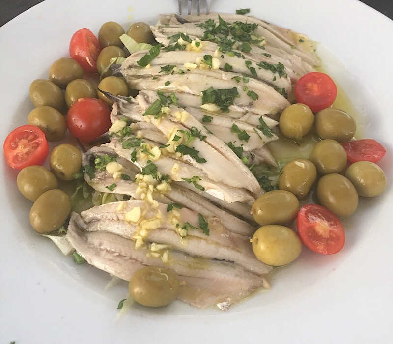Kleiner Nachschlag: als Appetizer Lomo mit Kräcker, dann Sardinas in Essig mit einem Hauch Knoblauch
