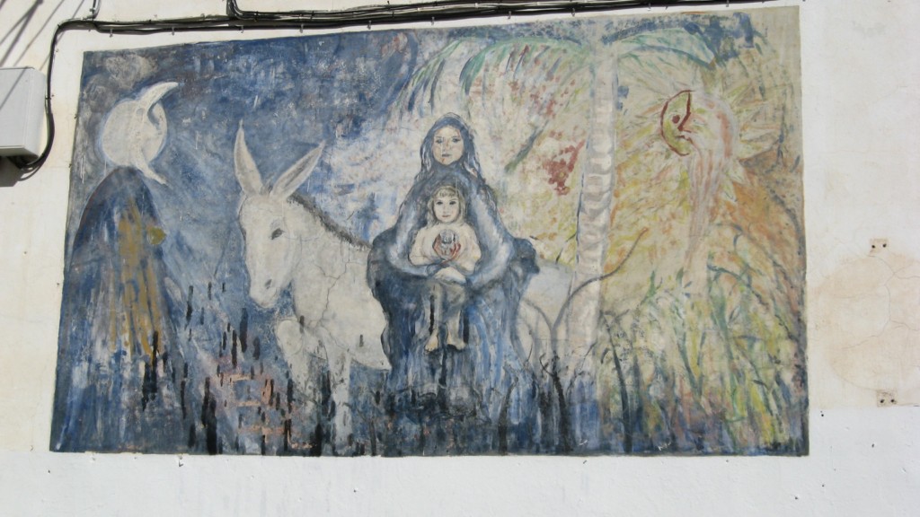 Ich hätte es trotzdem nicht gewußt.....Besonders schön finde ich auch das Bild an der Außenwand der Kirche...