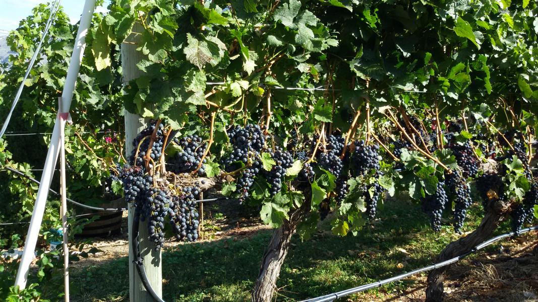 Okanagan Valley, das sich in nördlicher Richtung an mehreren Seen entlang auf ca. 200 Kilometer ausdehnt. Das Tal ist eigentlich Steppenlandschaft und wird in den heissen Sommermonaten durch Sonne und trockene Winde ausgetrocknet, aber durch die vielen Seen kann das Land rund um die Uhr bewässert werden und hier ist ein großes Weinanbaugebiet entstanden.