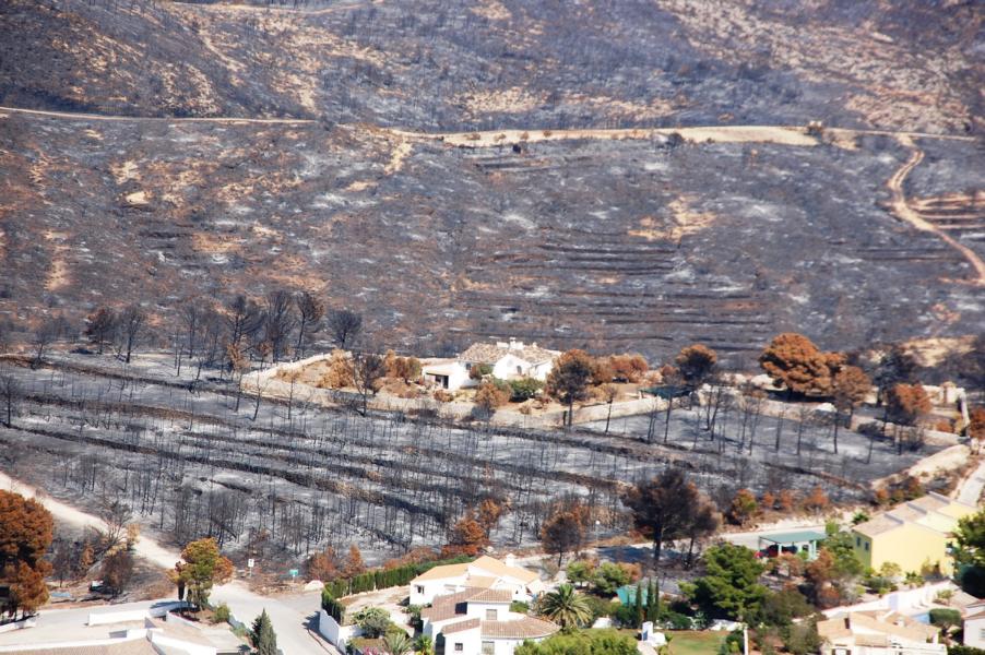 Ich bin heute diese Strecke gefahren, da ich mir ein eigenes Bild von der Umweltkatastrophe machen wollte. Ich habe viel verbrannte Erde im Naturpark Granadella gesehen, zwischen der riesigen Urbanisation "Cumbre del Sol" (Gemeinde Benitachell) und der Granadella-Bucht. Da sind zwar viele Pinien und Macchie verbrannt, doch die Macchienvegetation wird sich regenerieren.