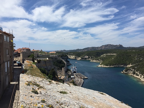 Ich bringe die Reise mal mit meinen Handybildern zu Ende, auf Korsika sind wir vor Bonifacio nur ein paar Stunden vor Anker gelegen und mit Tenderbooten in den hübschen Hafen der Stadt gebracht worden. Sehr steil geht's dann bergauf in die Altstadt, die Anfang Mai schon rappelvoll von vorzugsweise französischen Touristen war.