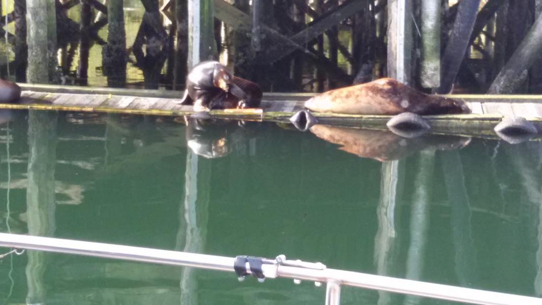 Gleich nach der Abfahrt konnten wir diese gemütlichen See-Elefanten beobachten, die auch die Morgensonne genossen haben.