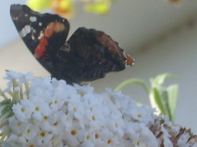 Den Admiral habe ich auch vor die Linse bekommen, aber leider etwas unscharf mit zusammengeklappten Flügeln...