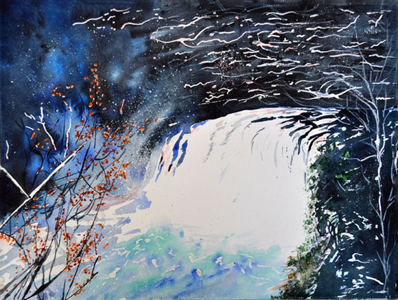 Sol..den Hintergrund habe ich in der Salztechnik gestaltet. Grobes oder feines Salz wird in die noch leicht feuchte Farbe gestreut ( den richtigen Zeitpunkt zu erwischen ist manchmal etwas kniffelig ,die Farbe darf nicht zu nass und nicht zu trocken sein) dann muss das Bild komplett trocknen und man kann das Salz entfernen.