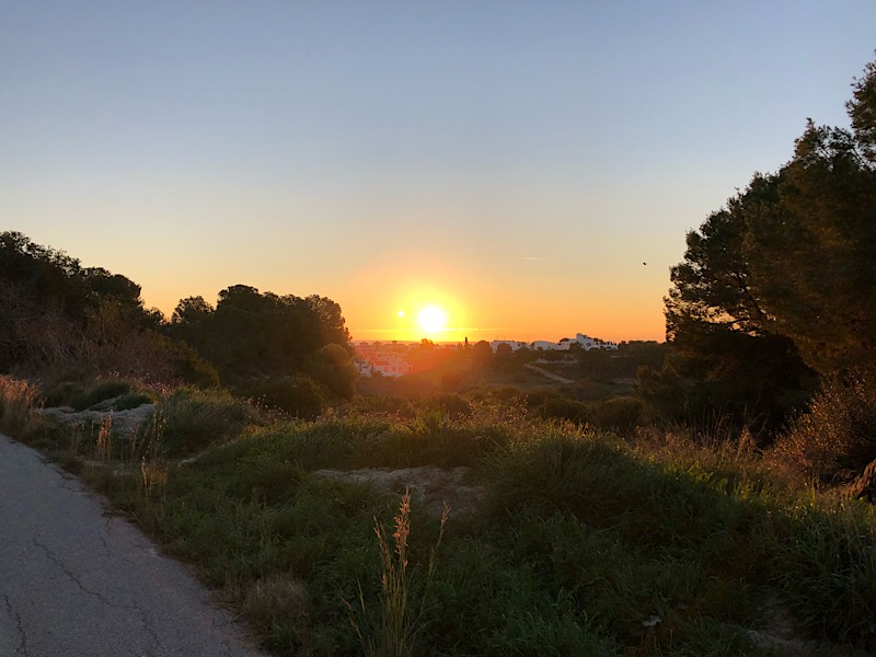 Brrrrr, Morgenspaziergang bei 9 Grad mit Blick aufs Meer von Villamartin aus.