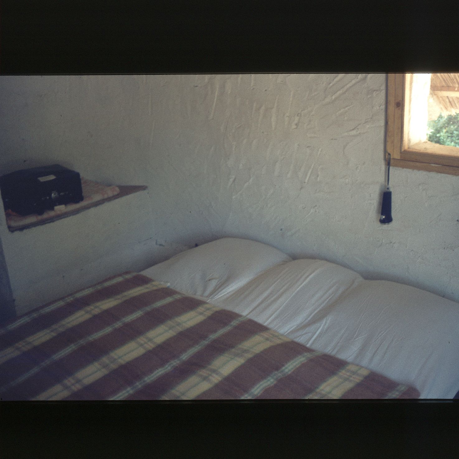 Die Taschenlampe an der Wand: die einzige nächtliche Lichtquelle. Statt Kleiderschrank: Nägel in den Dachbalken Waschgelegenheit: zentral und "open air": Bei Interesse kann ich auch noch mehr zeigen
