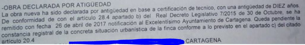 Hintergrund: Das Haus besteht aus einem alten Teil (der laut Bank in Ordnung ist) und einem (vor 20 Jahren erbauten) neuen Teil, auf den sich dieser Absatz bezieht. In der Escritura steht meiner Meinung nach das gesamte Haus komplett drin...