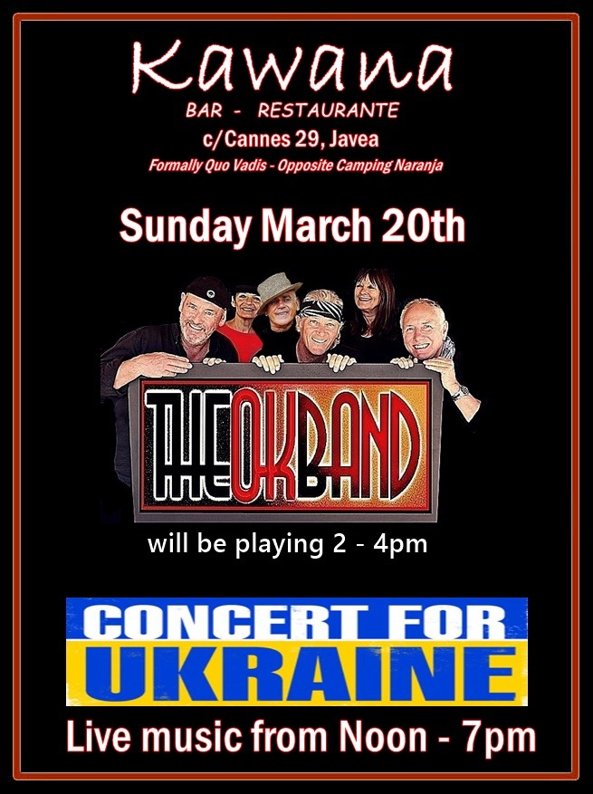 Am Sonntag, 20. März 2022, findet im Restaurant Kawana in Javea (ex Quo Vadis) ein musikalischer Nachmittag statt, dessen Erlös für die Ukraine und ihre Opfer gedacht ist. Von 12.00 Uhr bis 19.00 Uhr treten verschiedene Musiker auf.
