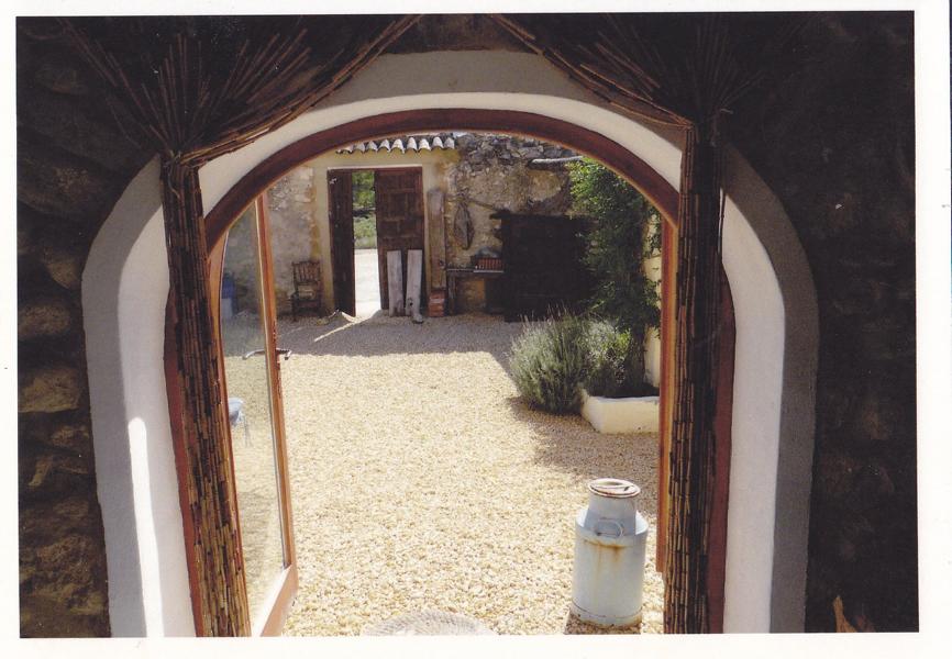 Ein großes Tor in der Außenmauer führt vom Haus über den Innenhof nach draußen.