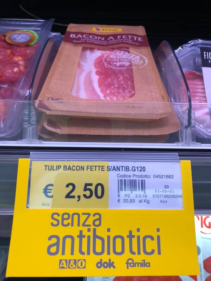 Das habe ich vor ein paar Wochen in Italien im Supermarkt fotografiert. Es hat mich schon etwas verstört, dass so für Produkte geworben wird. Eigentlich müsste doch eher ausgewiesen sein, wenn ein Produkt Antibiotika enthält :evil: