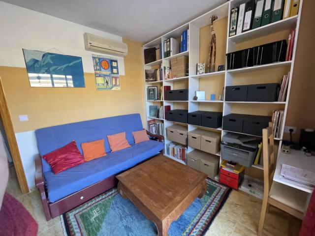 Geht man die Treppe hinauf, kommt man in die erste Etage, bestehend aus zwei Räumen mit großen Einbauschränken. Der Raum mit Ausgang zur schönen, ebenfalls neu gefliesten Terrasse wird als Büro und Gästezimmer verwendet und verfügt neben dem Einbauschrank über ein wandgroßes Regal mit kleinem Schreibtisch. Auf der Terrasse befindet sich auch ein professioneller Crosstrainer für ihre Fitness.