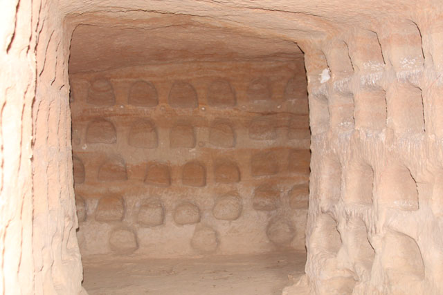 Ungewöhnliche, von Menschen erschaffene Gänge voller „Taschen“ an den Wänden. Der Ursprung geht ins 5. bis 7. Jahrhundert zurück und diente ursprünglich als Kloster. Die Nischen sollen dekorativer Natur gewesen sein und als Reliquienschreine gedient haben.