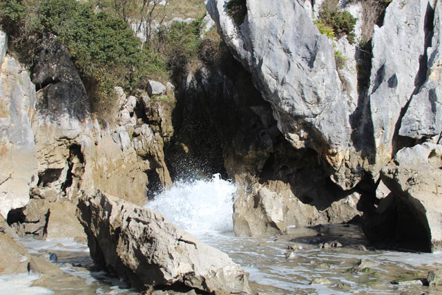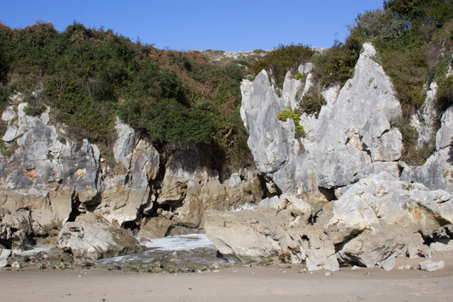 Schon geht es wieder weiter zum kleinsten Strand. Das Ziel heisst Playa de Gulpiyuri, nördlich von Naves. Der Strand hat keinen direkten Zugang zum Meer, wird aber durch Höhlen mit Meerwasser versorgt. Bei meinem Besuch war Ebbe.