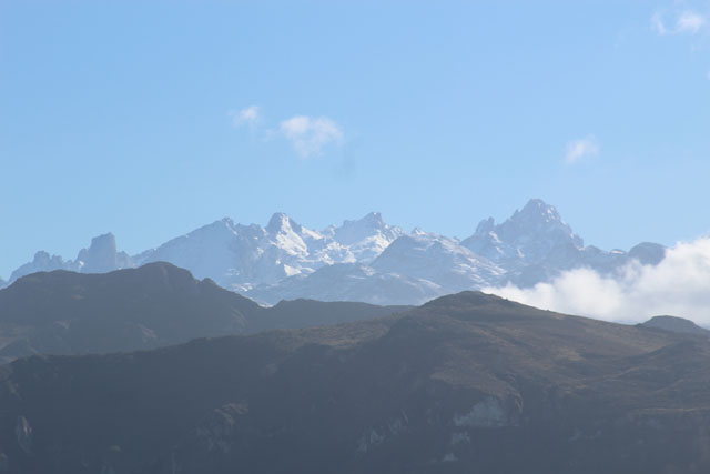 willkommene Abwechslung nach der letzten Strecke. Der nächste Fotohalt ist Ausgangs San Vicente de la Barquera, an bester Lage ein Rastplatz mit Sicht auf die Schnee bedeckten Berge.