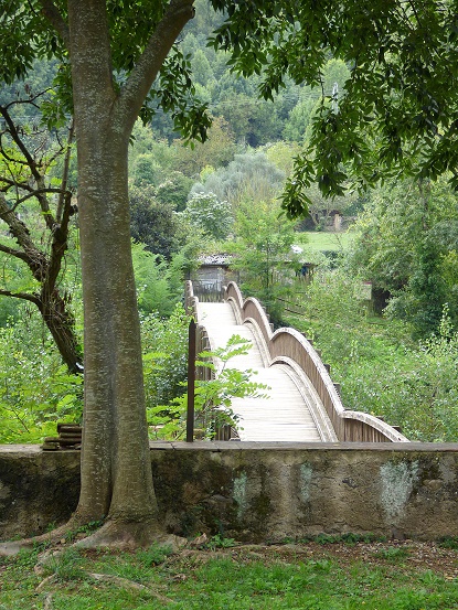 Ein Ausflug führte uns in den Parque Natural de la Zona Volcánica de la Garrotxa (Naturpark mit Vulkanzone) westlich von Figueres. Die grüne Landschaft der katalanischen Pyrenäen lockt mit vielen Wanderwegen. Unser erster Halt war Castellfollit de la Roca. Das Dorf ist das zweitkleinste in Katalonien mit ca. 1000 Einwohner. Eine ungewöhnliche Brücke führt über Fluß Fluviá. Das Dorf selbst liegt auf einem 50 m hohen und 1 km langen Vulkanfelsen. Die meisten Häuser stehen am Rande des Abgrundes.