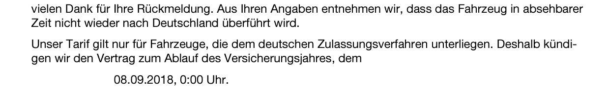 10 Min. später lag per eMail die Kündigung der Versicherung vor.
