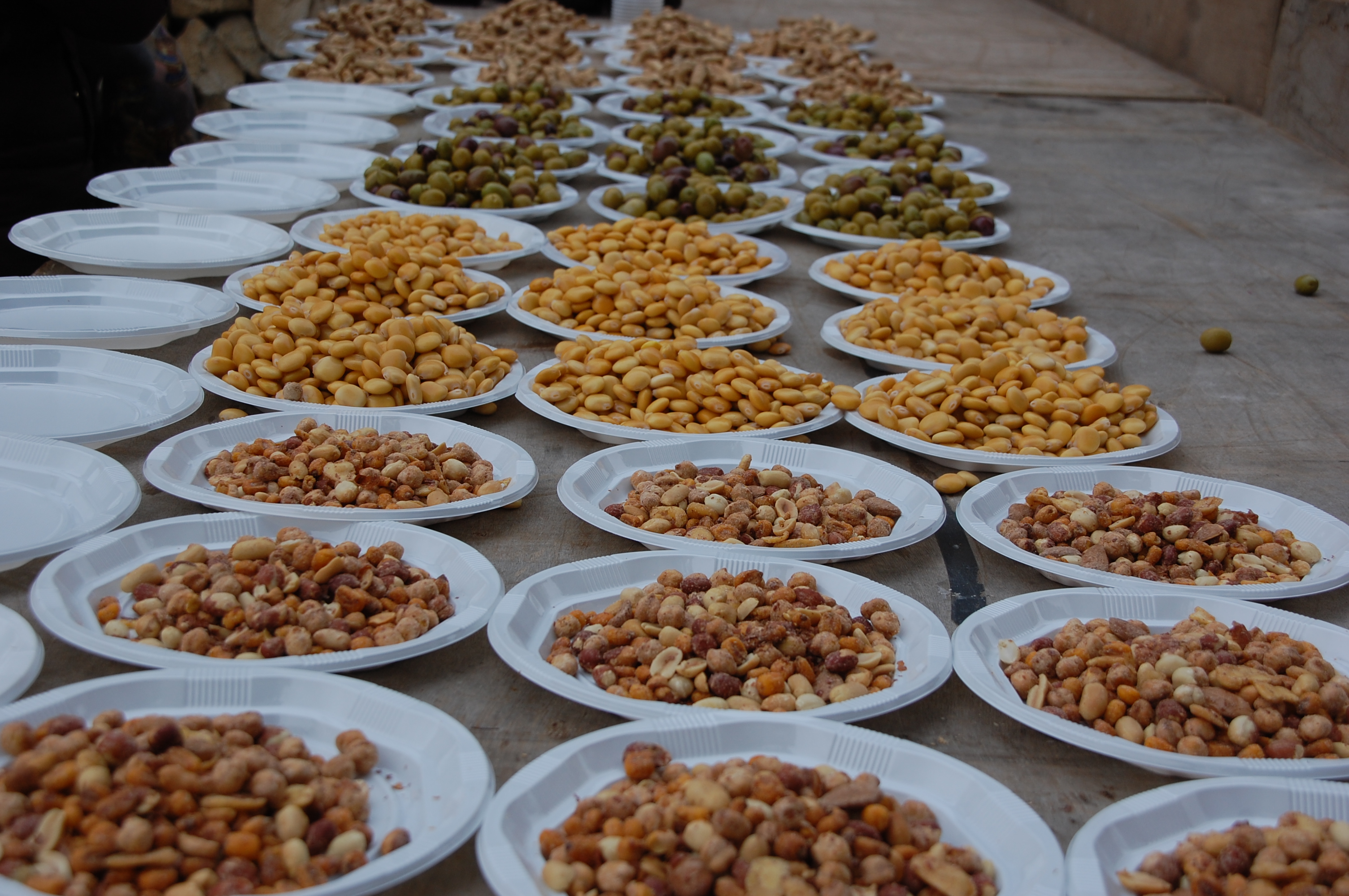 Wir wärmten uns bei einem kleinen Americano, knabberten noch warme Semillas de girasol confitadas, durften an diversen Ständen Käse kosten und Käse kaufen, vielerlei Oliven erschnuppern und Schnickschnack sehen, wie es ihn eben auf jedem Markt gibt... Marmelade aus Paprikaschoten, zahlreiche Honige und Turróns, im "Fest"Zelt eine Paella, vom Grill eine Salchicha, oder vielleicht ein Brot, frisch aus dem Ofen gezogen; alte Autos wurden ausgestellt (nicht wirklich mittelalterlich, aber immerhin ein Anziehungspunkt für die Männer...). Es war wirklich für jeden Geschmack etwas dabei.