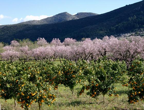 Bei herrlichem Sonnenschein und stürmischen Wind machten wir gestern eine Mandelblütenfahrt/Wanderung im Vall de Ebo. Da der direkte Weg durch Strassenbauarbeiten gesperrt ist, ging es erst über Orba zum Ortseingang Pego, dann links ab steil nach oben nach Vall de Ebo. Von der Höhe hat man einen herrlichen Blick zur Küste und dem Reisanbaugebiet von Pego.