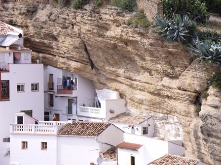 Setenil´ist in die Schlucht des Río Guadalporcún eingezwängt. Von vielen Häusern ist nur die Fassade zu sehen, der Rest in den Fels geschlagen.