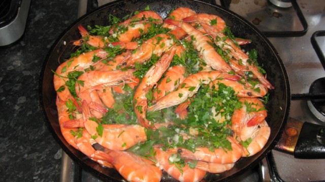 Obwohl - ich persönlich bevorzuge die geschälten gambas al ajillo, denn dabei bleiben die Hände beim Essen sauber