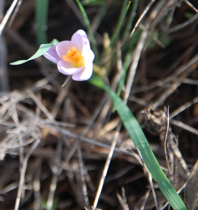 Heute ist die erste Blüte des Safrans aufgegangen, den ich im letzten Jahr in meinen Garten gepflanzt habe.