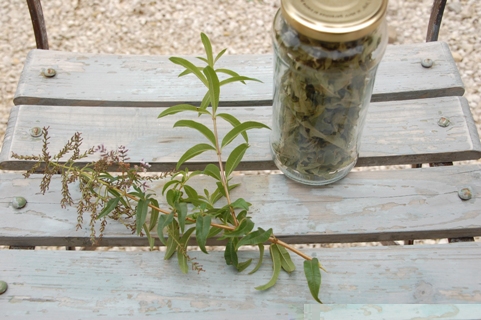 Erntezeit ist im Juni, da werden die Zweige bis auf 30 cm eingekürzt, die Pflanze wird den Rückschnitt mit einem kompakten Wachstum danken. Die abgeschnittenen Zweigenden bündelt man und lässt sie unter einem Dach im Schatten trocknen. Danach kann man die Blätter leicht abstreifen und sie in einem Glas mit Schraubverschluss oder einem Tuppertopf an einem dunklen Ort lichtgeschützt aufbewahren.