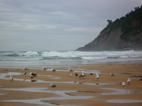 Die Berge der Cordillera del Sueve, keine 10 km von der Küste, steigen auf über 1100m Höhe an. Ein schöner Aussichtspunkt ist der Mirador del Fito mit schönem Blick zur Küste und bei gutem Wetter bis zu den Picos de Europa unterwegs besondere Verkehrsteilnehmer