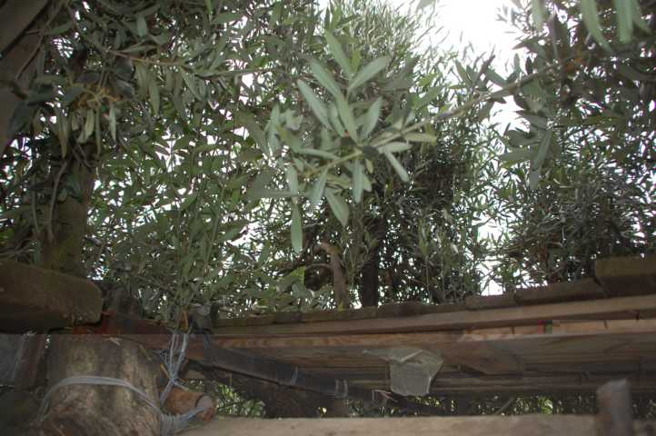 In der Regel sind es Johannisbrot- oder Olivenbäume, zur Not tun es auch Pinien, deren Äste auf besondere Weise beschnitten werden. Für die Krone können nur senkrecht wachsende Äste gebraucht werden, in andere Richtungen wachsende Zweige werden herausgeschnitten. Die äußeren Zweige des Baumes werden bis zum Boden gezogen, so dass das Laub wie eine Glocke um den Baum verteilt ist. Im Innern der Glocke ist ein Hohlraum. Unter der Krone befindet sich ein großes hölzernes Podest oder mehrere miteinander verbundene Stege, der Laie meint, ein Baumhaus vor sich zu haben. Doch wenn man das Podest über Leitern erricht hat, kann man im Stehen in die Krone sehen, wo die Leimruten (meistens Esparto-Ruten), im Wipfel verteilt sind. Unter dem Podest befinden sich im Schutze des Blätterschirms Volieren mit gefangenen Singvögeln, die ihre Artgenossen mit ihrem schönen Gesang anlocken, manchmal werden dazu auch Tonbänder verwendet. Wenn die Zugvögel die Leimruten berühren, kleben sie fest - gefangen und rettungslos verloren. Die geleimten Vögel fallen mitsamt der Stange zu Boden, wo sie von den paranyeros, die während der Saison*) ihre Nächte im Baumhaus verbringen, nur noch eingesammelt werden müssen.