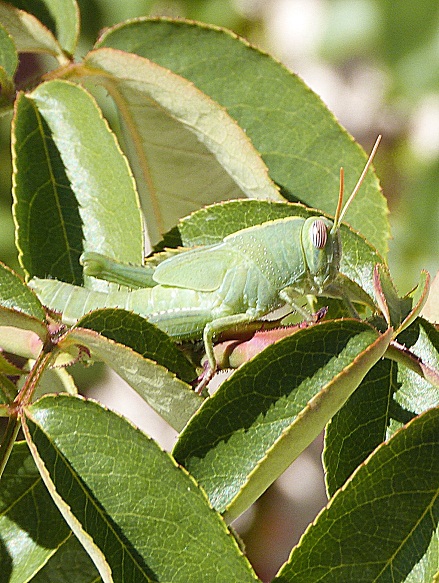 eine Heuschrecke im "nietenbesetzten" Panzer.