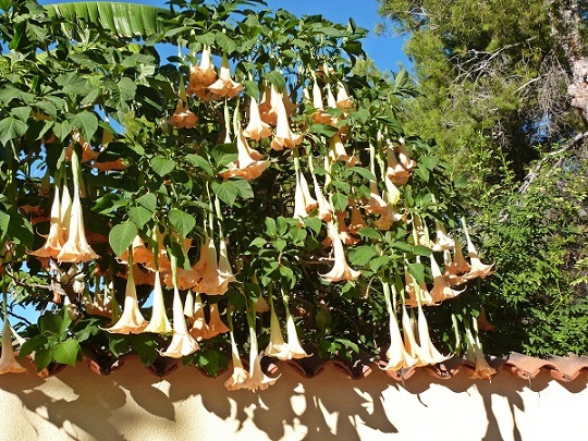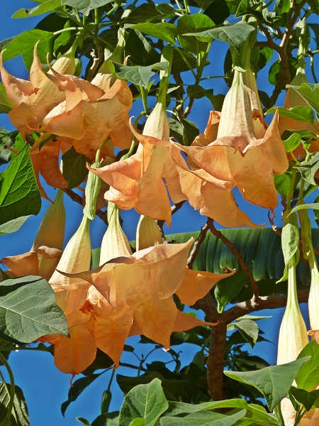 Ich habe mit dieser Pflanze kein Glück. Die erste kultivierte ich im Topf, wo sie natürlich nicht so groß wurde und mir dann im Winter erfror. Im Frühjahr kaufte ich eine neue Pflanze, suchte den optimalen Standort (wind- und vor der Mittagssonne geschützt), gab reichlich Wasser und Dünger, aber die Engelstrompete produzierte nur neue Blätter und warf sie wieder ab ohne großartig zu wachsen und ohne Blüten zu bilden