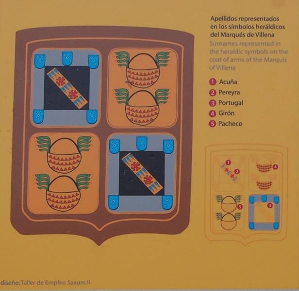 Die vier Tafeln des Wappens zeigen uns die Herkunft des Marques de Villena (Marquesado de Villena 1445-1480)