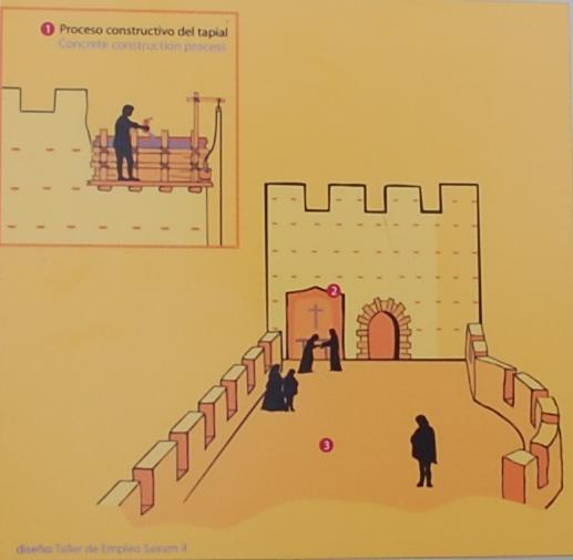Die kreisförmigen Flecken an der Wand sind von Projektilen 4, wahrscheinlich entstanden durch eine Bombardierung während der Belagerung durch den Grafen von Cocentaina.